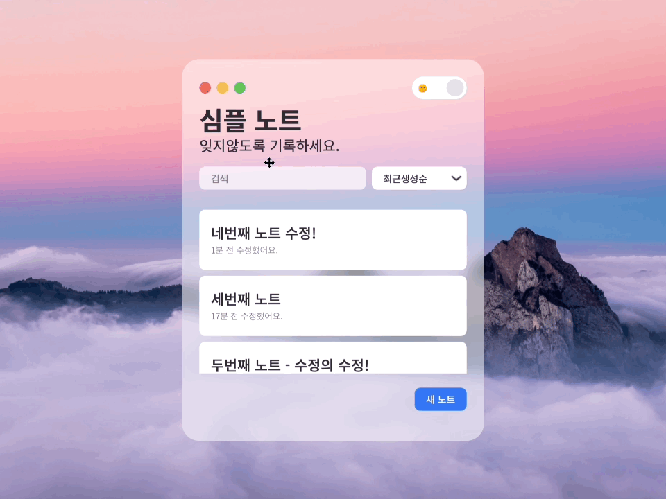 각 노트의 updateAt 시간부터 ~ 현재 시간의 간격을 비교 후 '몇 초 전 수정'과 같이 최근 수정 시간을 직관적으로 보여줍니다.