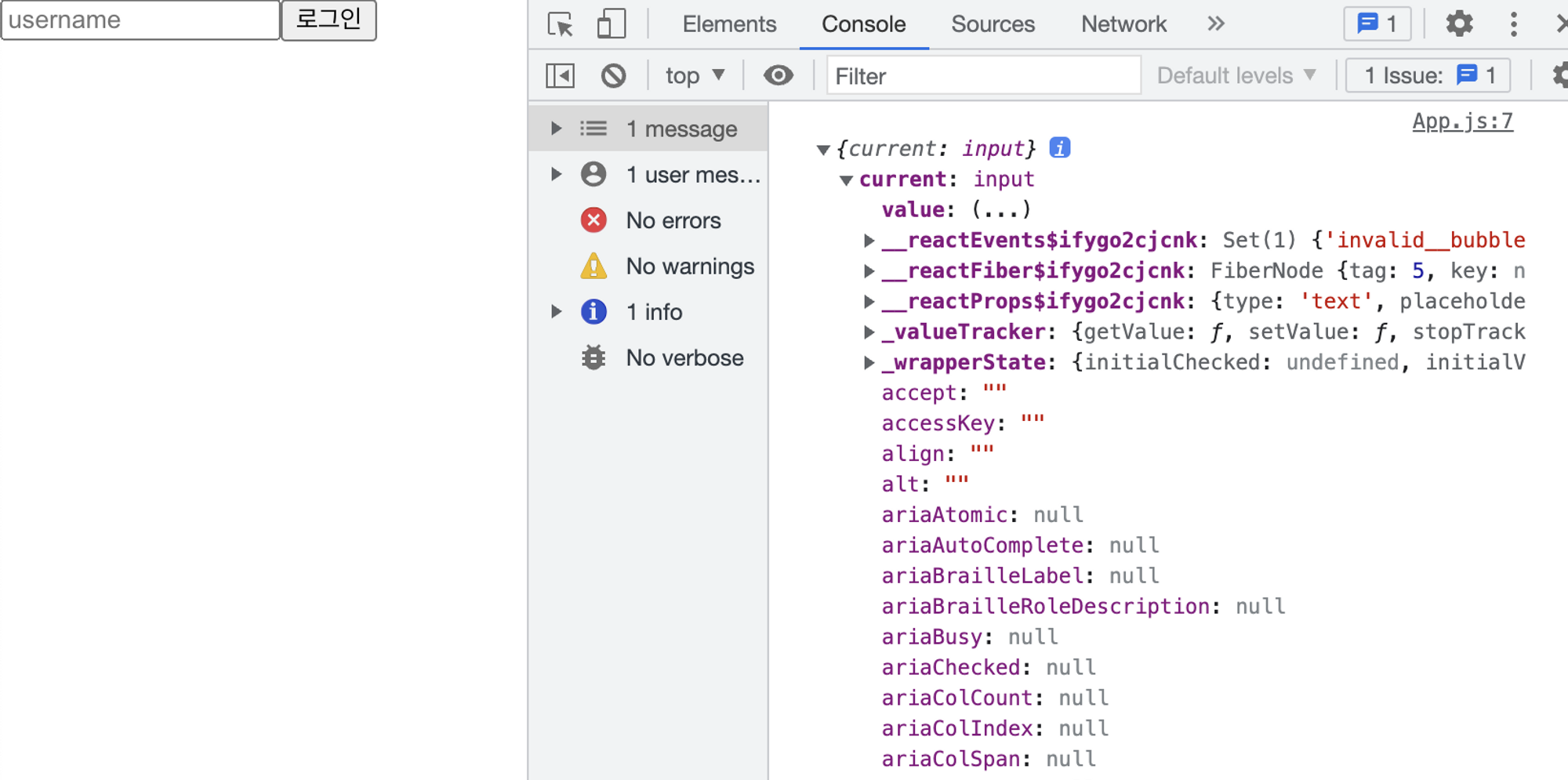 inputRef에 input이 정상적으로 담긴 것을 확인할 수 있을 것이다.