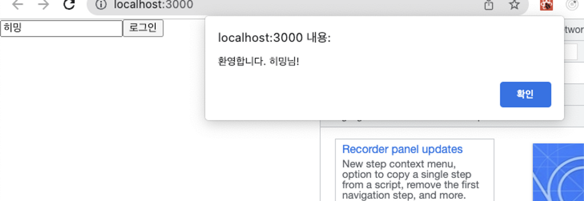alert창을 닫은 뒤에도 여전히 input 폼에 포커싱이 되어 있는 것을 확인할 수 있다.